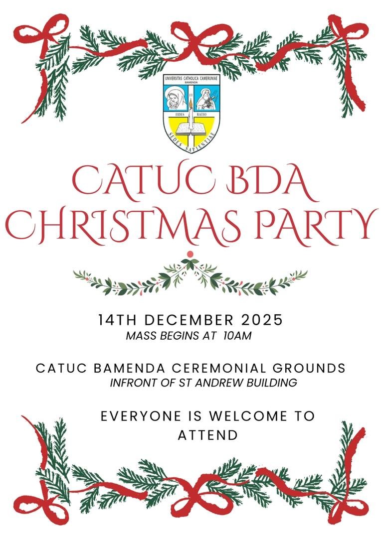 🎄✨ It’s that joyful time of the year again! ✨🎄 Join the CATUC BDA family as we celebrate the spirit of Christmas. ❤️ Mass begins at 10 AM 📅 14th December 2025 📍 CATUC Bamenda Ceremonial Grounds (In front of St. Andrew Building)